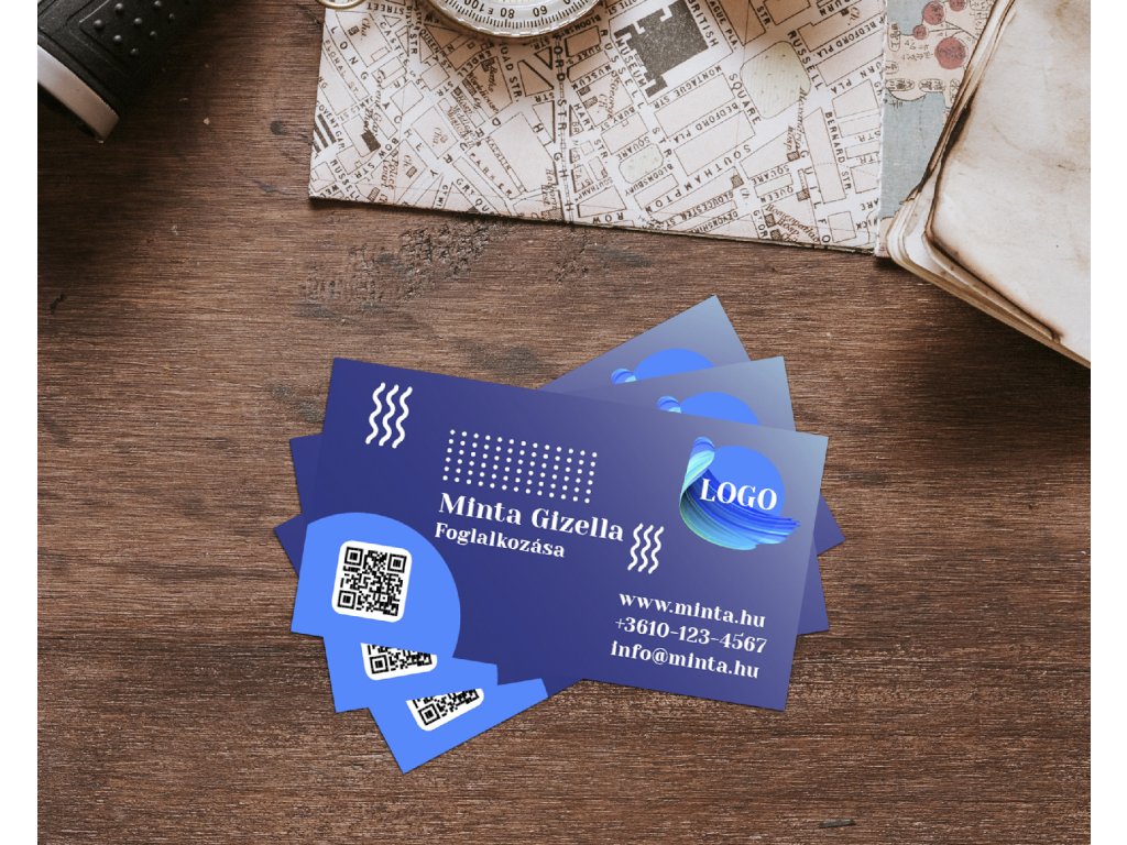 A csomagban 100 db névjegykártya van, mely mindkét oldalon nyomtatva van 300g-os matt műnyomó papíron,